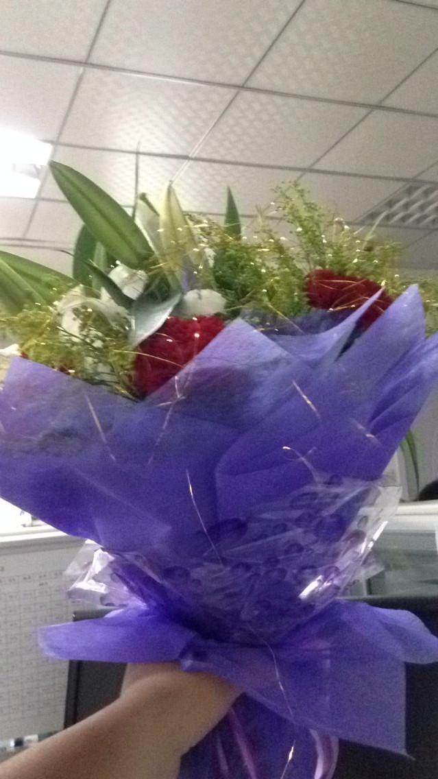 音樂(lè)響起,蛋糕吃起,鮮花獻(xiàn)起,李經(jīng)理高興兮、、、