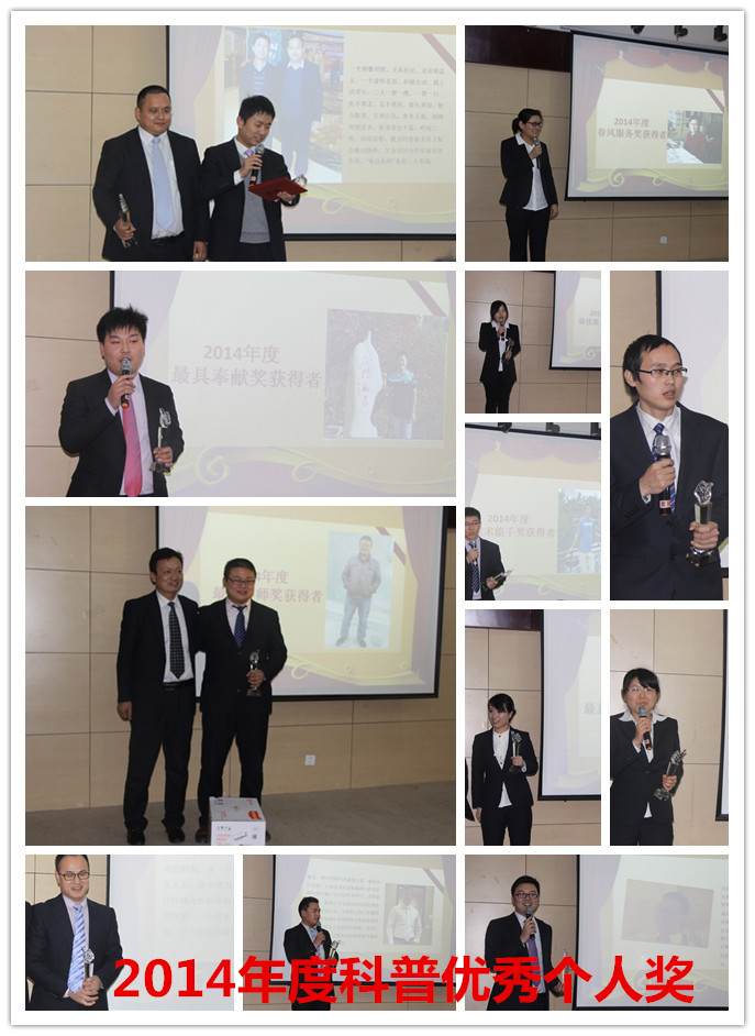 會(huì)議對(duì)科普公司2014年度涌現(xiàn)出來的“最佳部門”、“最佳員工”“最佳拍檔”、“最佳新人” “突出貢獻(xiàn)員工”等進(jìn)行了現(xiàn)場(chǎng)表彰。